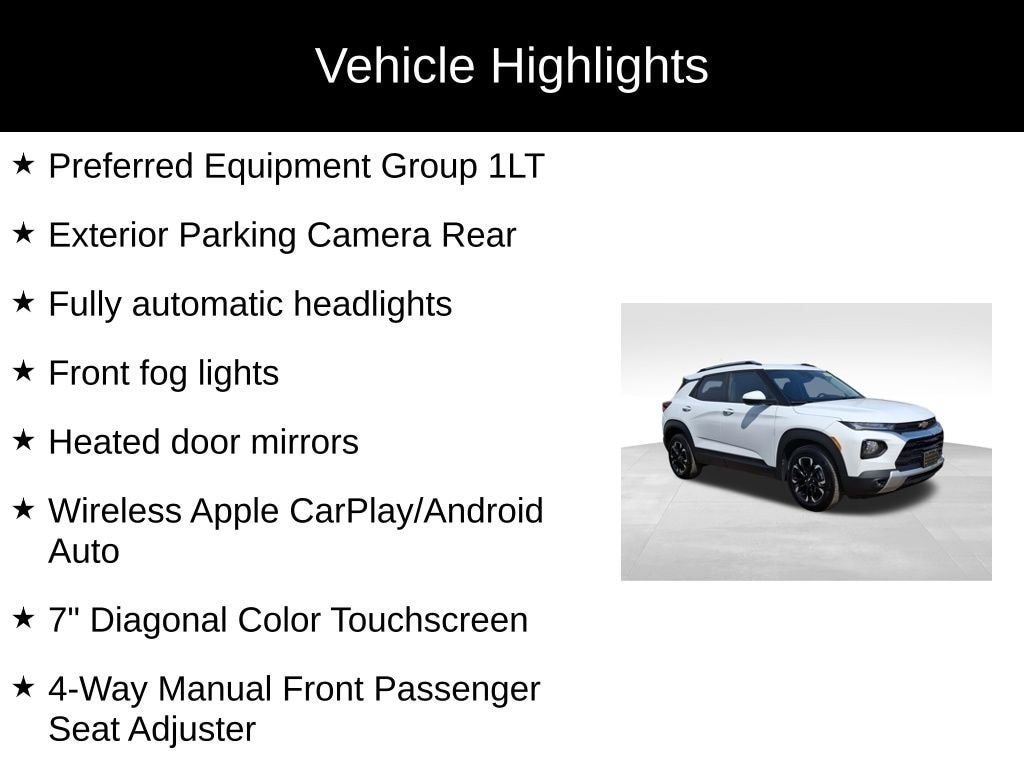 Summit White 2023 Chevrolet TrailBlazer LT 4D Sport Utility FWD CVT 1.2L Ecotec Turbo DOHC DI w/VVT 29/31 City/Highway MPG
