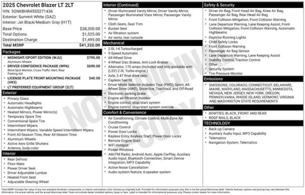 - Warranty: <<< Preliminary 2025 Warranty >>>