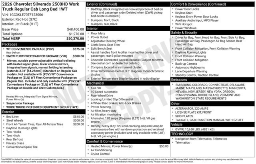 Schumacher Chevrolet of Boonton is very proud to offer this rock solid 2026 Chevrolet Silverado 2500HD Work Truck in Red Hot Beautifully equipped with 10-Speed Automatic, 4WD, and Black Cloth! Price includes: $500 - Customer Cash. Exp. 11/03/2025