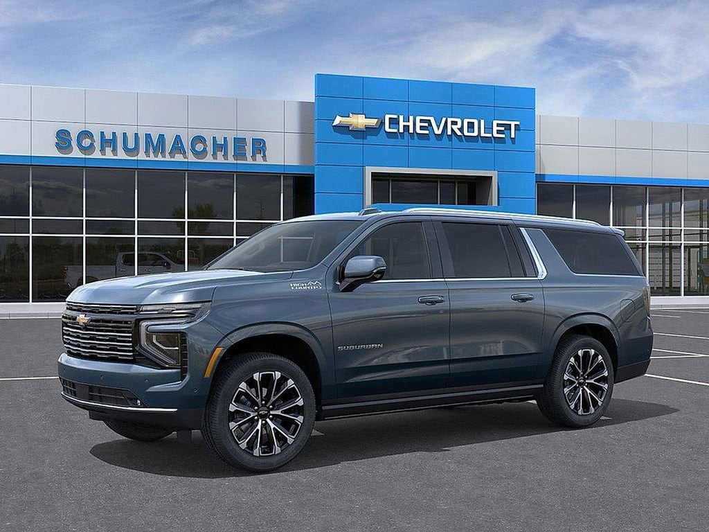 Schumacher Chevrolet of Clifton is excited to offer this outstanding-looking 2026 Chevrolet Suburban High Country in Lakeshore Blue Metallic Beautifully equipped with Advanced Security Package (Glass Breakage Sensor, Self-Powered Horn Theft-Deterrent Alarm System, Vehicle Inclination Sensor, and Vehicle Interior Movement Sensor), Advanced Trailering Package (Blind Zone Steering Assist w/Trailering, Hitch View w/Pan/Zoom Image Adjustment, and Smart Trailer Integration Indicator), High Country Deluxe (Air Ride Adaptive Suspension, Dual-Pane Power Panoramic Sunroof, and Power-Retractable Assist Steps), License Plate Front Mounting Package, Max Trailering Package (2-Speed Active Electronic AutoTrac Transfer Case, Extra Capacity Cooling System, Hill Descent Control, and Integrated Trailer Brake Controller), Preferred Equipment Group 3LZ (15 Diagonal Multi-Color Head-Up Display, 3rd Row 60/40 Power-Folding Split-Bench, 4-Way Power Driver Lumbar Seat Adjuster, 4-Way Power Front Passenger Lumbar Seat Adjuster, 8-Way Power Front Passenger Seat Adjuster, Bose 10-Speaker Surround w/CenterPoint, Bright Front & Rear Door Sill Plates, Chrome Door Handles w/Body-Color Strip, Dual Exhaust System, Front LED Fog Lamps, Heated 2nd Row Outboard Seats, Heated Driver & Front Passenger Seats, Heated Power-Adjustable Outside Mirrors, Heated Steering Wheel, Inside Rearview Auto-Dimming Rear Camera Mirror, Interior Camera, LED Headlamps w/LED Daytime Running Lamps, LED Tail Lamps, Memory Settings, Perforated Heated & Ventilated Seats, Power Release 2nd Row Bucket Seats, Power Tilt & Telescopic Steering Column, Power-Sliding Center Floor Console, Rear Power Liftgate, Universal Home Remote, and Wireless Phone Charging), Technology & Entertainment Package (Rear Seat Media System), Technology Package (AutoSense Hands-Free Power Liftgate), 10 Speakers, 3 Years OnStar One (R9M), 3.23 Rear Axle Ratio, 3rd row seats: split-bench, 4-Wheel Disc Brakes, 8-Way Power Driver Seat Adjuster, ABS brakes, Adaptive suspension, Air Conditioning, Alloy wheels, AM/FM radio: SiriusXM with 360L, Apple CarPlay/Android Auto, Auto High-beam Headlights, Auto-dimming door mirrors, Auto-dimming Rear-View mirror, Auto-leveling suspension, Automatic temperature control, Brake assist, Bumpers: body-color, Compass, Delay-off headlights, Driver door bin, Driver vanity mirror, Dual front impact airbags, Dual front side impact airbags, Electronic Stability Control, Emergency communication system: OnStar Services capable, Exterior Parking Camera Rear, Four wheel independent suspension, Front anti-roll bar, Front Bucket Seats, Front Center Armrest, Front dual zone A/C, Front fog lights, Front reading lights, Fully automatic headlights, Garage door transmitter, Heads-Up Display, Heated door mirrors, Heated front seats, Heated rear seats, Heated steering wheel, Illuminated entry, Low tire pressure warning, Magnetic Ride Control Suspension, Memory seat, Navigation system: Google built-in compatibility (select service plan required, terms and limitations apply), Occupant sensing airbag, Outside temperature display, Overhead airbag, Overhead console, Panic alarm, Passenger door bin, Passenger vanity mirror, Perforated Leather Seating Surfaces, Power door mirrors, Power driver seat, Power Liftgate, Power passenger seat, Power steering, Power windows, Radio data system, Radio: 17.7 Diagonal Advanced Color LCD Display, Rain sensing wipers, Rear air conditioning, Rear anti-roll bar, Rear reading lights, Rear window defroster, Rear window wiper, Remote keyless entry, Security system, SiriusXM w/360L Trial Subscription, Speed control, Speed-sensing steering, Split folding rear seat, Spoiler, Steering wheel memory, Steering wheel mounted audio controls, Super Cruise, Tachometer, Telescoping steering wheel, Tilt steering wheel, Traction control, Trailer Camera Provisions, Trailering Assist Guidelines, Trip computer, Turn signal indicator mirrors, Variabl