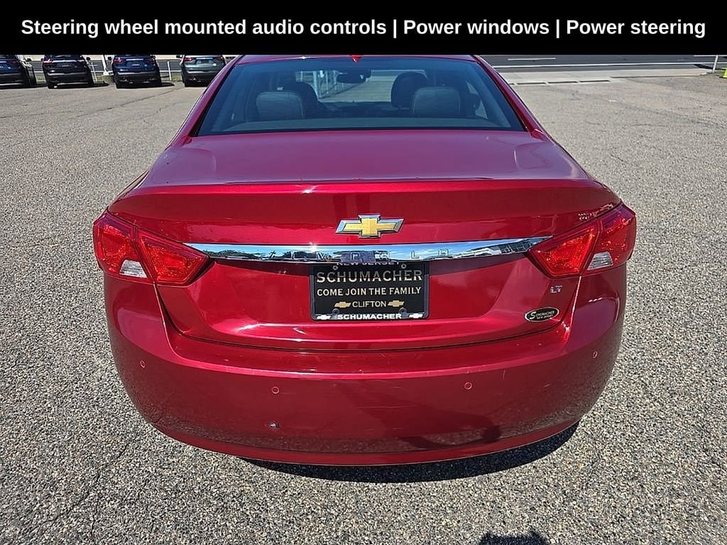 Schumacher Chevrolet of Clifton is excited to offer this wonderful 2014 Chevrolet Impala LT in Crystal Red Tintcoat Beautifully equipped with Advanced Safety Package (Forward Collision Alert, Lane Departure Warning System, Rear Cross-Traffic Alert, and Side Blind Zone Alert), Convenience Package (Auto-Dimming Inside Rear-View Mirror, Carpeted Trunk Mat, Premium Carpeted Front & Rear Floor Mats, Rear Park Assist, Rear Vision Camera, Remote Vehicle Starter System, and Universal Home Remote), Preferred Equipment Group 2LT, Premium Seating Package (8-Way Power Front Passenger Seat Adjuster, Heated Driver & Front Passenger Seats, Sueded Microfiber Seat Trim, and Trunk Cargo Convenience Net), 100-Watt 6-Speaker System, 18 Painted Alloy Wheels, 8 Diagonal Color Infotainment Display, Alloy wheels, Driver 4-Way Power Lumbar Seat Adjuster, Heated door mirrors, Power door mirrors, Power driver seat, Power steering, Power Tilt-Sliding Sunroof, Power windows, Remote keyless entry, SD Card Receptacle, SiriusXM & HD Radio, Steering wheel mounted audio controls, 3 USB Ports, 4-Wheel Disc Brakes, 6 Speakers, 8-Way Power Driver Seat Adjuster, ABS brakes, Air Conditioning, AM/FM radio: SiriusXM, Automatic temperature control, Brake assist, Bumpers: body-color, CD player, Compass, Delay-off headlights, Driver door bin, Driver vanity mirror, Dual front impact airbags, Dual front side impact airbags, Electronic Stability Control, Emergency communication system: OnStar Directions & Connections, Four wheel independent suspension, Fr & Rr Premium All-Weather Floor Mats (LPO)(DISC), Front anti-roll bar, Front Bucket Seats, Front Center Armrest, Front dual zone A/C, Front License Plate Bracket, Front Passenger 4-Way Power Lumbar Seat Adjuster, Front reading lights, Fully automatic headlights, Illuminated entry, Knee airbag, Leather Shift Knob, Low tire pressure warning, Occupant sensing airbag, Overhead airbag, Overhead console, Panic alarm, Passenger door bin, Passenger vanity mirror, Premium audio system: Chevrolet MyLink, Premium Cloth/Leatherette Seat Trim, Radio data system, Radio: Chevrolet MyLink AM/FM Stereo w/CD Player, Rear anti-roll bar, Rear reading lights, Rear seat center armrest, Rear side impact airbag, Rear window defroster, Security system, Speed control, Speed-sensing steering, Split folding rear seat, Tachometer, Telescoping steering wheel, Tilt steering wheel, Traction control, Trip computer, Turn signal indicator mirrors, and Variably intermittent wipers!