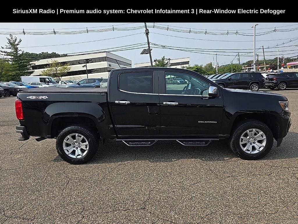 Schumacher Chevrolet of Clifton is pumped up to offer this superb 2021 Chevrolet Colorado LT in Black Beautifully equipped with Heavy-Duty Trailering Package, LT Convenience Package (Front Fog Lamps, Manual Rear-Sliding Window, Rear-Window Electric Defogger, and Remote Vehicle Starter System), Preferred Equipment Group 4LT (Enhanced Driver Instrument Information Display and Rear Vision Camera), Chrome Appearance Package (Chrome Beltline Moldings, Chrome Door Handles, Outside Htd Pwr-Adjustable Chrome Mirrors, and Rear Chrome Bumper), Apple CarPlay/Android Auto, Driver 6-Way Power Seat Adjuster, Heated Driver & Front Passenger Seats, Heated Steering Wheel, Power door mirrors, Power Driver Lumbar Control Seat Adjuster, Power driver seat, Power windows, Premium audio system: Chevrolet Infotainment 3, Rear step bumper, Remote keyless entry, SiriusXM Radio, Steering wheel mounted audio controls, Traction control, Wheels: 17 x 8 Blade Silver Metallic Cast Alloy, 3.42 Rear Axle Ratio, 4-Wheel Disc Brakes, 6 Speakers, 6-Speaker Audio System Feature, ABS brakes, Air Conditioning, Alloy wheels, AM/FM radio: SiriusXM, Auto-dimming Rear-View mirror, Automatic Locking Rear Differential, Bumpers: body-color, Cloth Seat Trim, Compass, Delay-off headlights, Driver door bin, Driver vanity mirror, Dual front impact airbags, Dual front side impact airbags, Electronic Stability Control, Exterior Parking Camera Rear, Front anti-roll bar, Front Bucket Seats, Front Center Armrest, Front License Plate Kit, Front reading lights, Front wheel independent suspension, Fully automatic headlights, Illuminated entry, Low tire pressure warning, Occupant sensing airbag, Outside temperature display, Overhead airbag, Overhead console, Panic alarm, Passenger door bin, Passenger vanity mirror, Power steering, Radio data system, Radio: Chevrolet Infotainment 3 System, Rear reading lights, Rear seat center armrest, Security system, Speed control, Speed-sensing steering, Tachometer, Telescoping steering wheel, Tilt steering wheel, Trip computer, and Variably intermittent wipers!