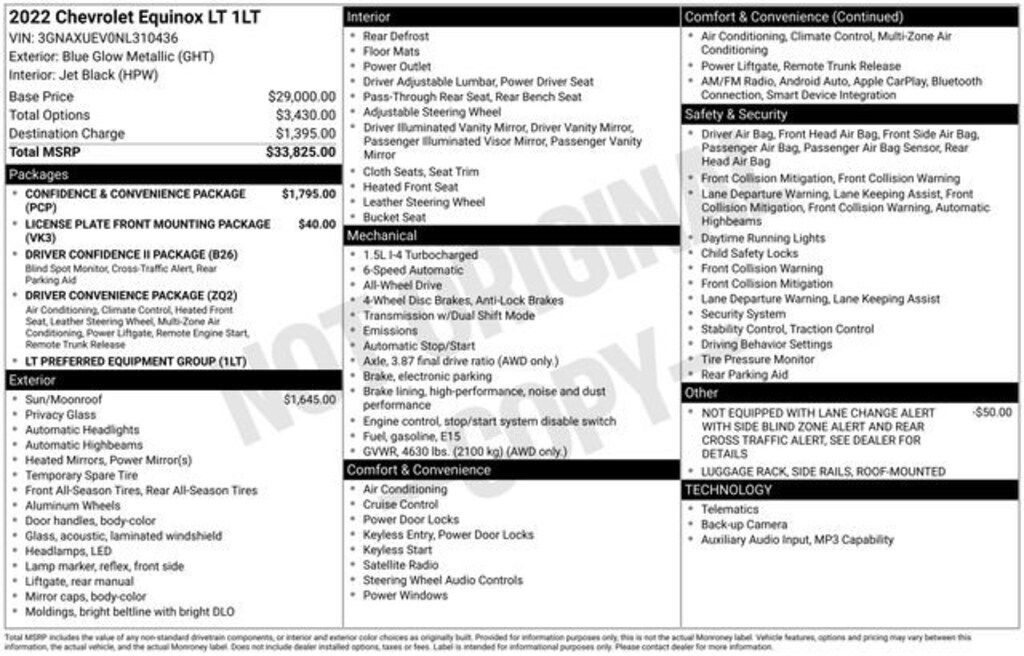 Odometer is 6064 miles below market average!AWD.Blue Glow Metallic 2022 Chevrolet Equinox LT 4D Sport Utility AWD 6-Speed Automatic Electronic with Overdrive 1.5L DOHC 25/30 City/Highway MPGAdvertised Price Cannot Be Combined With Any Other Rebate, Special APR or Chevrolet buying Programs.
