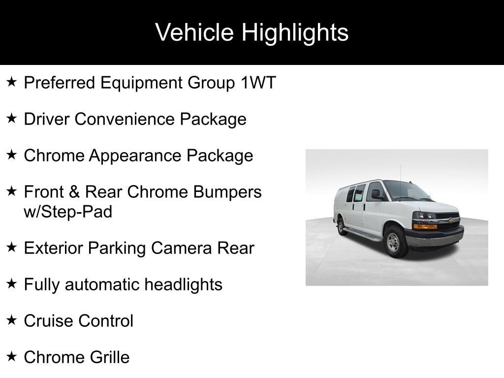 Express 2500 Work Van Cargo, 3D Cargo Van, 4.3L V6, 8-Speed Automatic with Overdrive, RWD, Summit White, Jet Black/Medium Dark Pewter Cloth, Chrome Appearance Package, Chrome Grille, Cruise Control, Driver Convenience Package, Exterior Parking Camera Rear, Front & Rear Chrome Bumpers w/Step-Pad, Fully automatic headlights, Preferred Equipment Group 1WT, Tilt Steering Wheel.