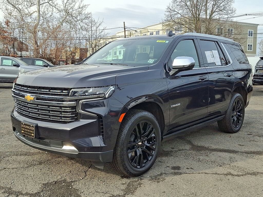 Tahoe Premier, EcoTec3 5.3L V8, 10-Speed Automatic with Overdrive, 4WD, Dark Ash Metallic, Jet Black Leather, 1st & 2nd Row Color-Keyed Carpeted Floor Mats, 2-Speed Active Electronic AutoTrac Transfer Case, 3rd Row 60/40 Power-Folding Split-Bench Seat, Auto-Dimming Inside Rear-View Mirror, Bose 10-Speaker Centerpoint Surround Audio Sys Ft, Bright Front & Rear Door Sill Plates, Chrome Door Handles w/Body-Color Strip, Chrome Mirror Caps, Color-Keyed Carpeting Floor Covering, Driver & Front Outboard Passenger Airbags, Dual Exhaust System, Dual-Pane Power Panoramic Sunroof, Enhanced Driver Information Center, Floor Console, Fully automatic headlights, Hands-Free Rear Power Programmable Liftgate, Heated & Ventilated Driver & Front Passenger Seats, Heated 2nd Row Outboard Seats, Heated door mirrors, Heated Driver & Front Passenger Seats, Heated Steering Wheel, Hill Descent Control, Infotainment Display, Lane Change Alert w/Side Blind Zone Alert, LED Daytime Running Lamps, Memory Settings, Outside Heated Power-Adjustable Mirrors, Perforated Leather Seat Trim, Power Liftgate, Power Release 2nd Row Bucket Seats, Power Tilt & Telescopic Steering Column, Preferred Equipment Group 1LZ, Rear Cross Traffic Alert, Remote Start, Safety Alert Seat, SiriusXM Radio w/360L, Universal Home Remote, Wireless Charging, Wrapped Steering Wheel.