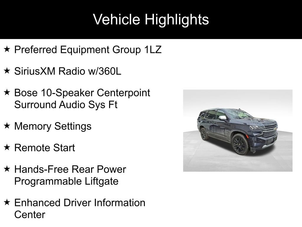 Priced below KBB Fair Purchase Price! Schumacher replaced the air filter, cabin filter, and wipers; changed the oil & filter; rotated the tires.Tahoe Premier, EcoTec3 5.3L V8, 10-Speed Automatic with Overdrive, 4WD, Dark Ash Metallic, Jet Black Leather, 1st & 2nd Row Color-Keyed Carpeted Floor Mats, 2-Speed Active Electronic AutoTrac Transfer Case, 3rd Row 60/40 Power-Folding Split-Bench Seat, Auto-Dimming Inside Rear-View Mirror, Bose 10-Speaker Centerpoint Surround Audio Sys Ft, Bright Front & Rear Door Sill Plates, Chrome Door Handles w/Body-Color Strip, Chrome Mirror Caps, Color-Keyed Carpeting Floor Covering, Driver & Front Outboard Passenger Airbags, Dual Exhaust System, Dual-Pane Power Panoramic Sunroof, Enhanced Driver Information Center, Floor Console, Fully automatic headlights, Hands-Free Rear Power Programmable Liftgate, Heated & Ventilated Driver & Front Passenger Seats, Heated 2nd Row Outboard Seats, Heated door mirrors, Heated Driver & Front Passenger Seats, Heated Steering Wheel, Hill Descent Control, Infotainment Display, Lane Change Alert w/Side Blind Zone Alert, LED Daytime Running Lamps, Memory Settings, Outside Heated Power-Adjustable Mirrors, Perforated Leather Seat Trim, Power Liftgate, Power Release 2nd Row Bucket Seats, Power Tilt & Telescopic Steering Column, Preferred Equipment Group 1LZ, Rear Cross Traffic Alert, Remote Start, Safety Alert Seat, SiriusXM Radio w/360L, Universal Home Remote, Wireless Charging, Wrapped Steering Wheel.Dark Ash Metallic 2023 Chevrolet Tahoe Premier 4D Sport Utility 4WD 10-Speed Automatic with Overdrive EcoTec3 5.3L V8Don't hesitate...a deal like this doesn't last forever! Reach out to us at 1-855-958-3198 to speak with one of our customer friendly product specialists to schedule the test drive of YOUR next vehicle!
