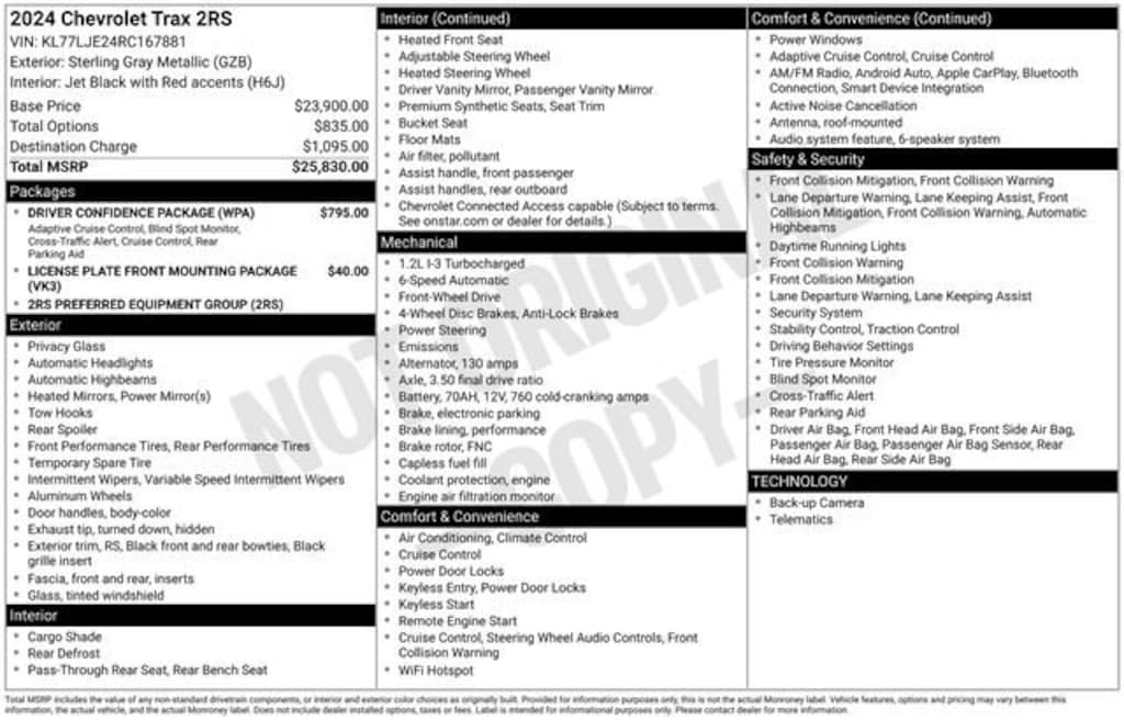 The 2024 Chevrolet Trax 2RS is a standout compact SUV that delivers exceptional value and versatility. With its sleek design, advanced technology, and impressive performance, this vehicle is a true testament to Chevrolet's commitment to engineering excellence.