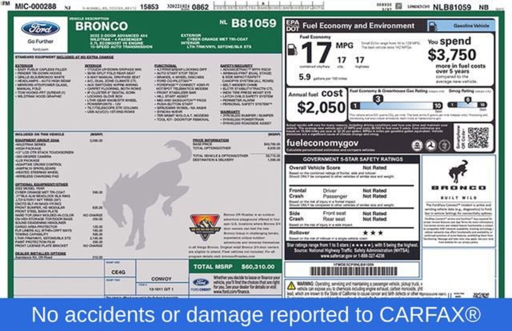 Cyber Orange Metallic Tricoat 2022 Ford Bronco Wildtrak 2D Sport Utility 4WD 10-Speed Automatic 2.7L EcoBoost V6