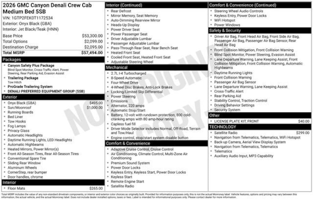 Introducing the 2026 GMC Canyon Denali - a remarkable midsize truck that blends rugged capability with refined luxury. This stunning Black beauty boasts a powerful 2.7L I4 Turbocharged engine that delivers an impressive 310 horsepower, ensuring you command the road with confidence.