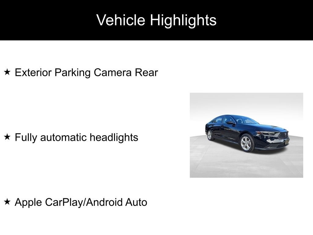 Accord LX, 4D Sedan, 1.5T I4 DOHC 16V Turbocharged VTEC, CVT, FWD, Black, Cloth, Apple CarPlay/Android Auto, Exterior Parking Camera Rear, Fully automatic headlights.